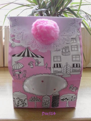 Bardzo dziękuję za miłe komentarze pod ostatnim postem. Beżową serwetkę z różowym wykończeniem zrobiłam specjalnie pod kubeczek-kurkę, zapakowałam i chyba sprawiłam miły prezent mojej znajomej.